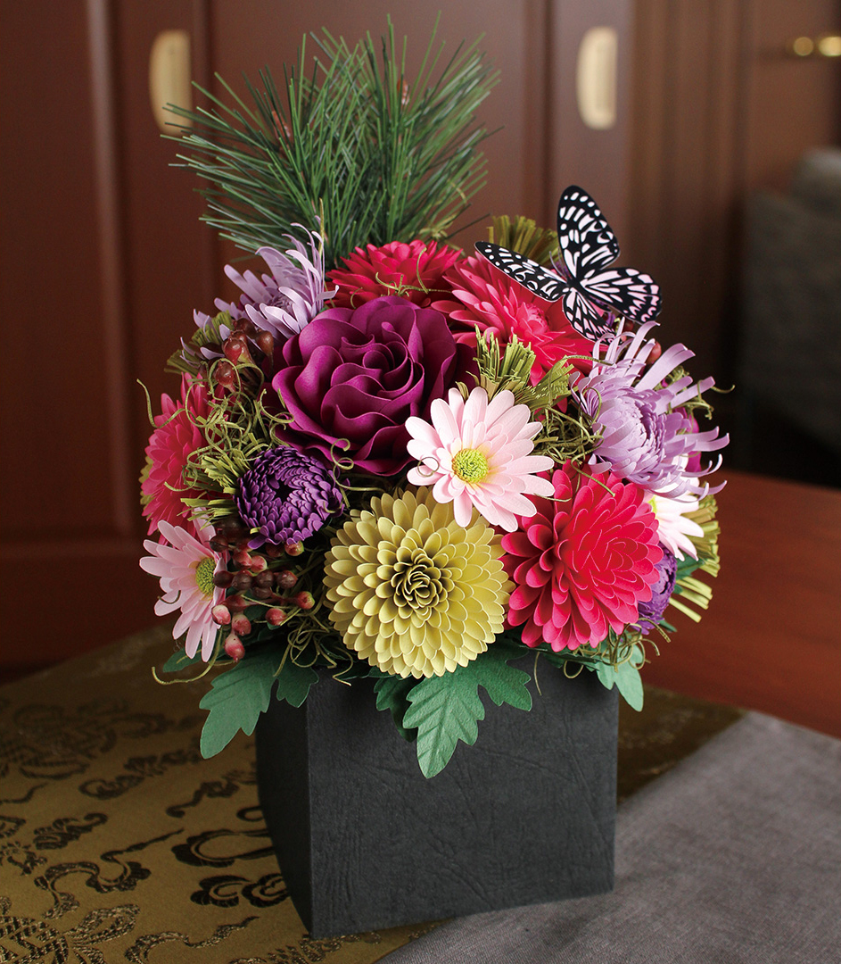 ペーパーフラワーのお正月アレンジメント