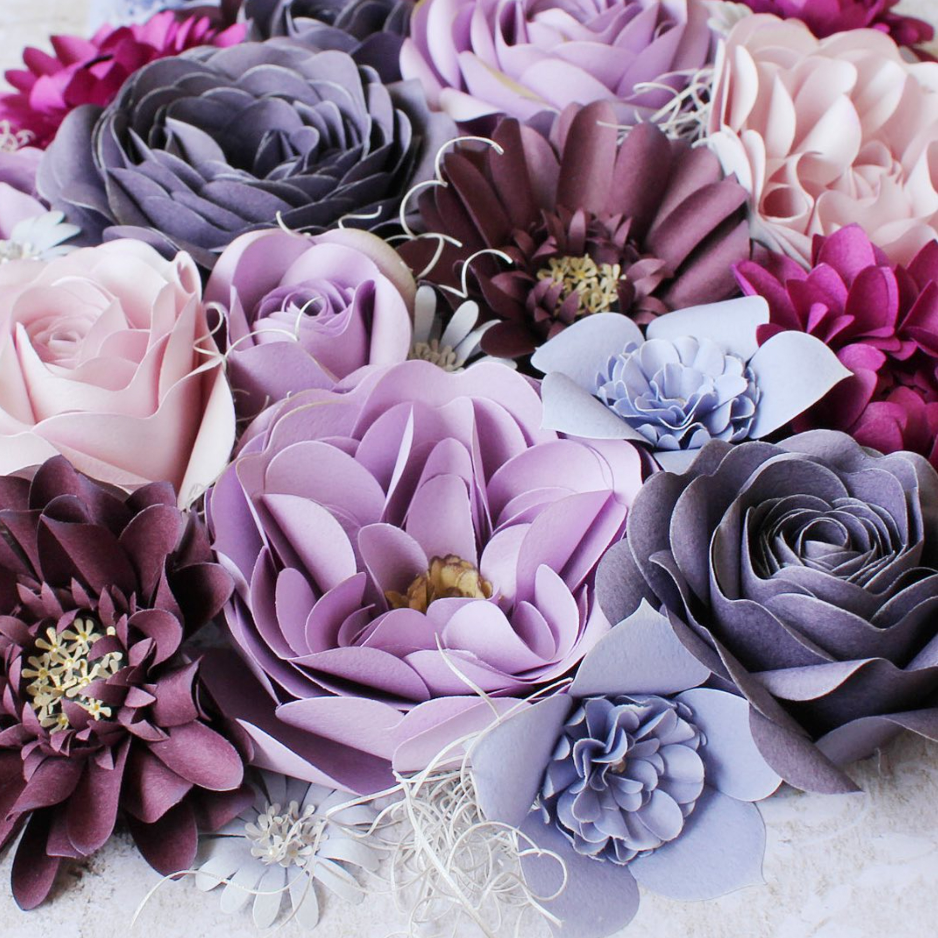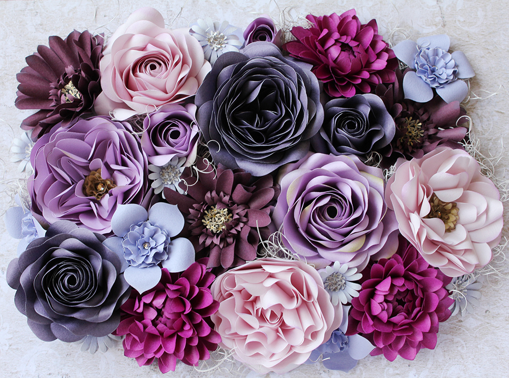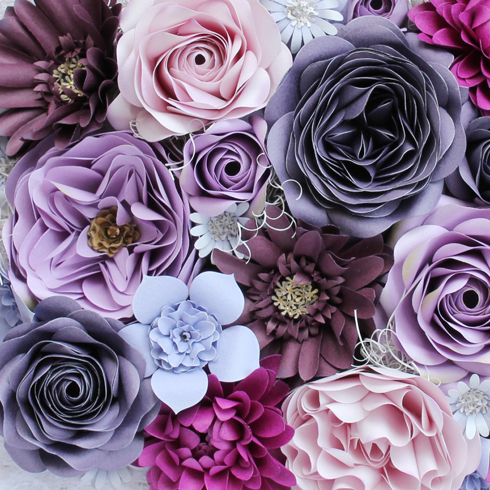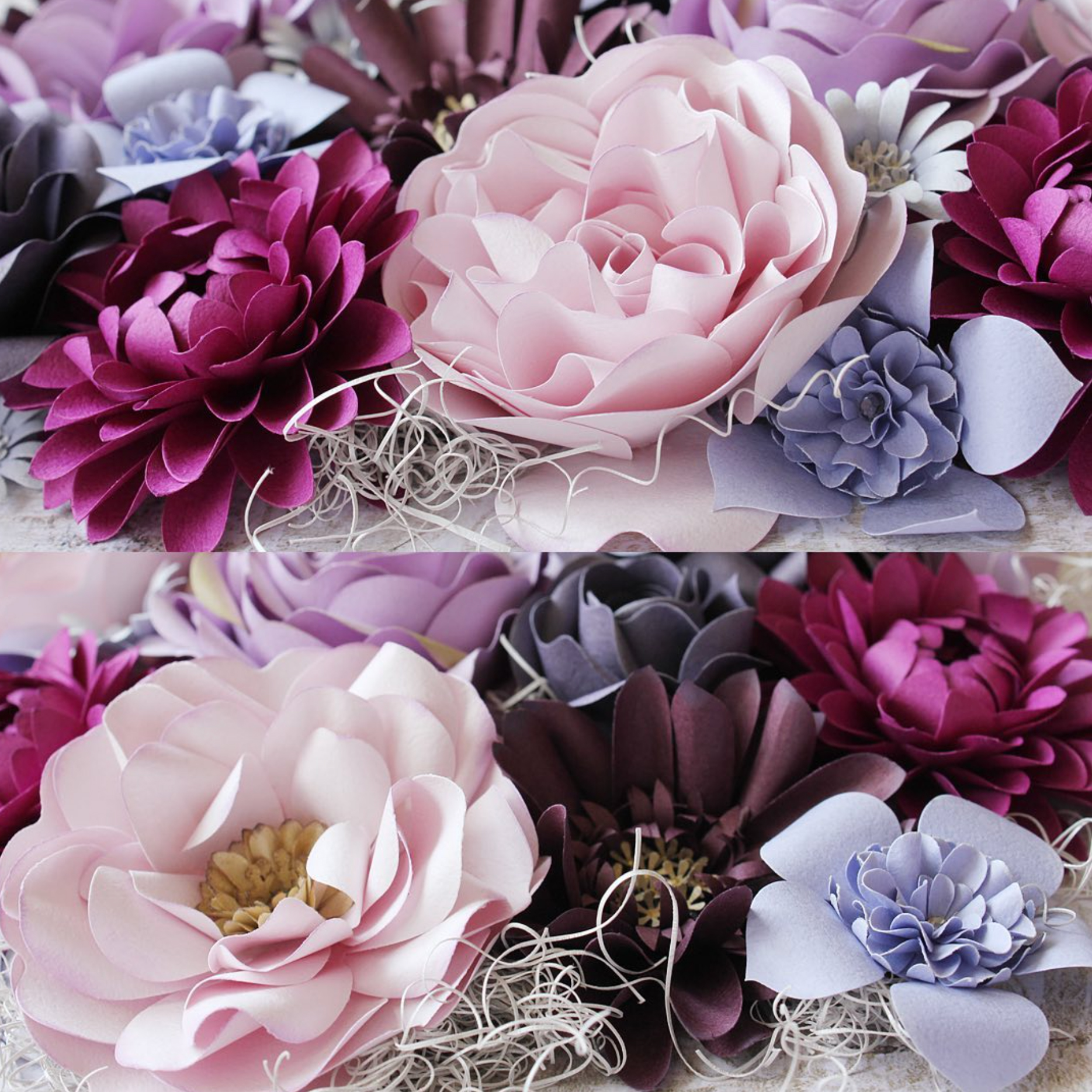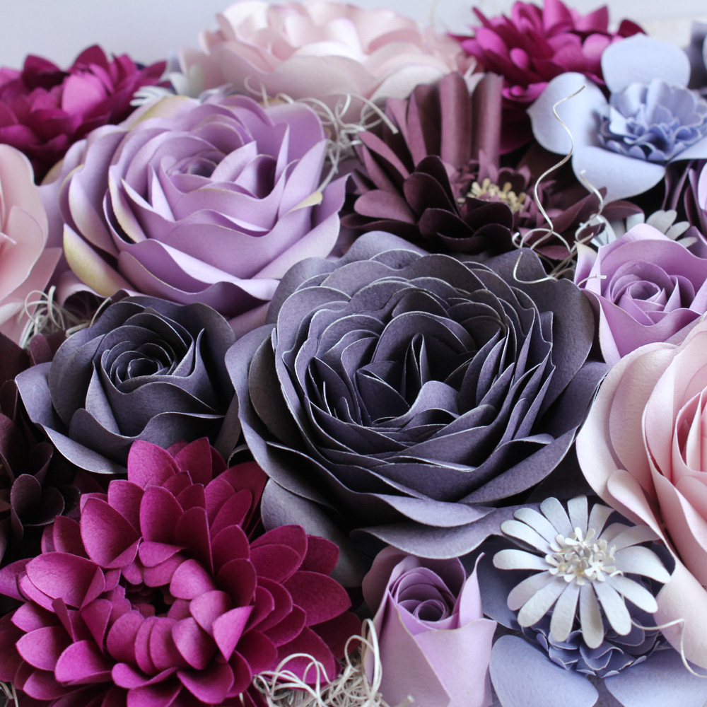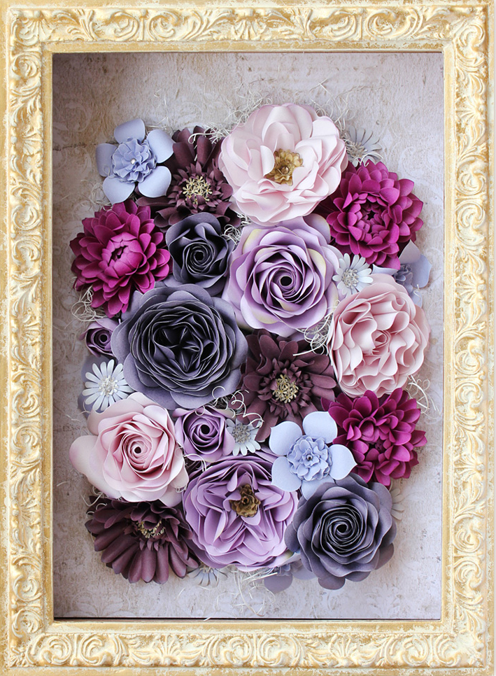 パープル系のペーパーフラワーを使ったフレームアレンジメントです