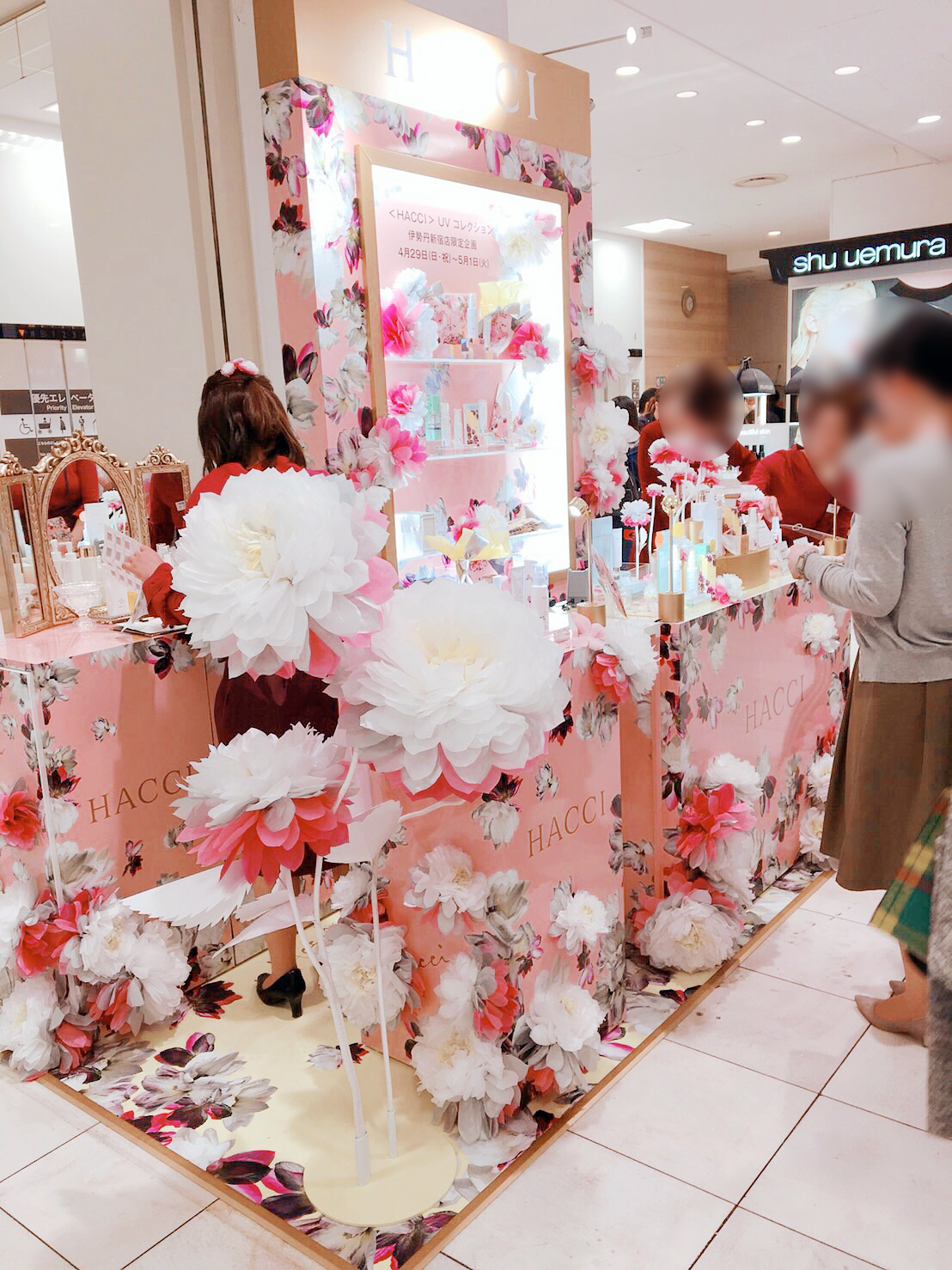 美容ブランド「HACCI」様の新宿伊勢丹ポップアップストア用のペーパーフラワーを制作