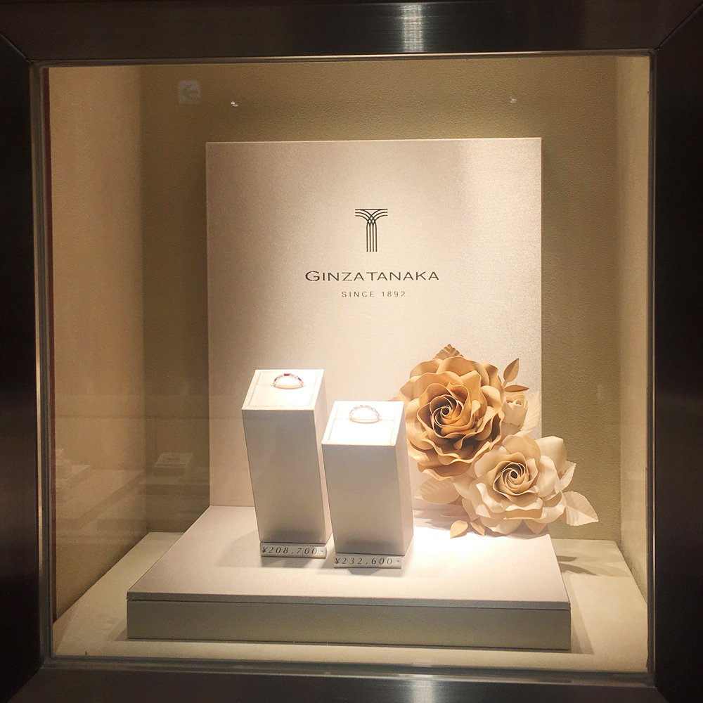 田中貴金属ジュエリー様直営店「GINZA TANAKA」様店舗装飾用のペーパーフラワー