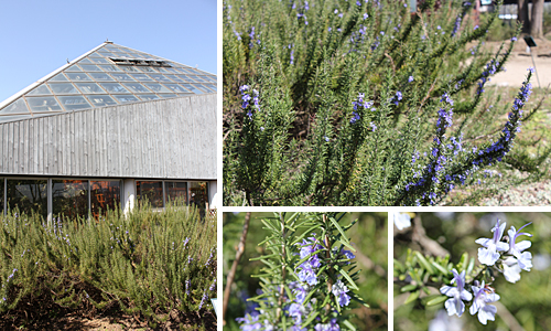 こちらはハーブ園。ローズマリーが花を咲かせ始めています。近寄ってみると、ハーブのいい香りがしました。