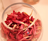 前回ご紹介したチューリップの花びらが落ちて、ドライフラワーになりました。黄色い縁取りのある、少しオレンジがかった赤い花びらでしたが、最後はアンティークな雰囲気のあるシックな色に!小さなガラスビンに入れたら、ちょっとしたインテリア小物に・・・